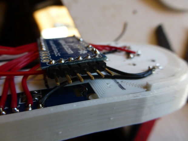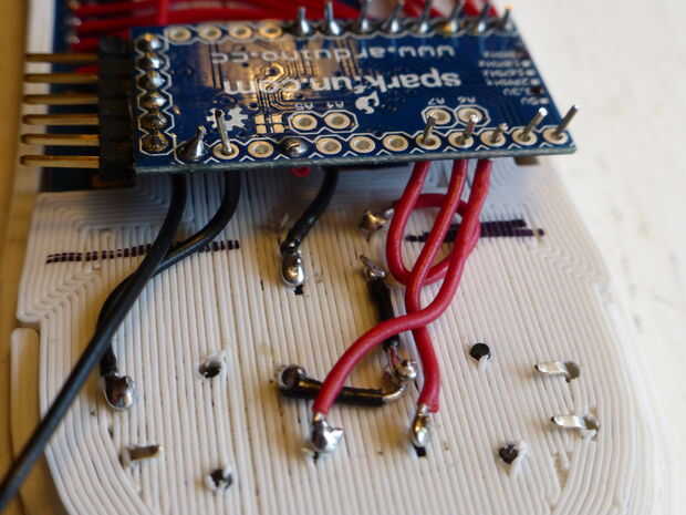 7. Ahora caben todos los cables en las clavijas y asegúrese de que el Arduino está en posición para que el encabezado de ángulo será accesible a través del orificio en el caso de la parte inferior!