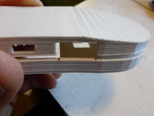 1. Tome la parte superior e inferior casos y los acoplen y utilice un rotulador para marcar los puntos en el caso superior, donde la gran apertura de la caja de la parte inferior encontrarán lo (ver imagen).