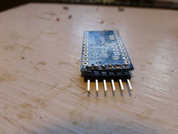 3. Ahora soldar la cabecera macho ángulo de Arduino. Recorte los bits extras de los pasadores que vienen a través de Arduino.