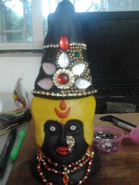 Rostro de Kali necesita ayuda. El maniquí de fibra de vidrio azul estoy usando como una base para su cuerpo es buena, pero la cara es muy delicada. No es forma de una diosa Védica capaz de la matanza de miles de demonios.Nuevamente estoy haciendo un