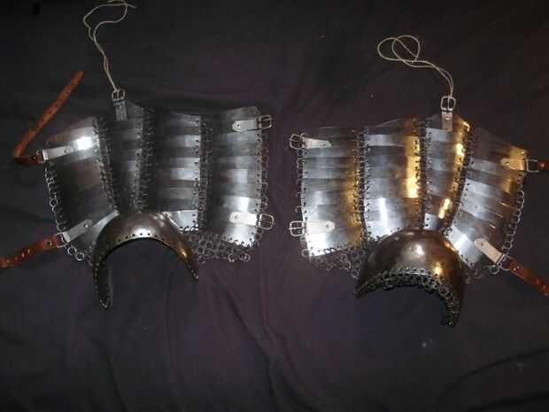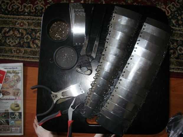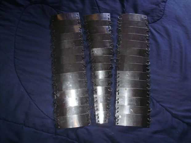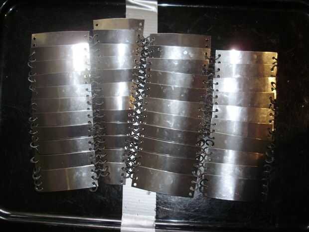 Estos son de 1-1/4" plataforma las bandas otra vez, sin embargo utilicé remache de cuña achatada 9mm anillos de maille (es decir, que tuve que clavar cada cierre de anillo) y una servida 16 calibre rodilla p que todas las hebillas y accesorios son hechos así de 3/4 bandas de la plataforma a mano y las uñas.