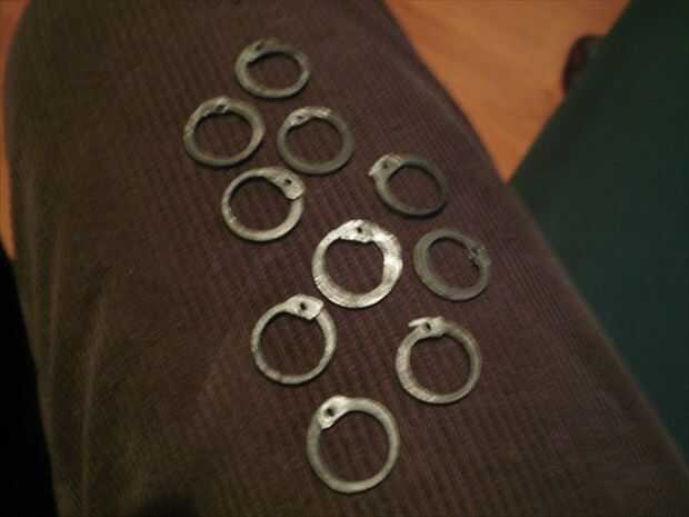 Lo primero a tener en cuenta los anillos de perforación es que la superposición es suficientemente aplanada, trato y han mi traslapos aplanado hasta el punto donde se encuentran por lo menos 1/8" de ancho y preferiblemente un poco más cerca de 3/16". Yo todavía puedo hacer un agujero en menos, pero me parece que durante la fase de remachado el remache hinchazón a menudo hará que los lados rasgar hacia fuera si son delgadas.