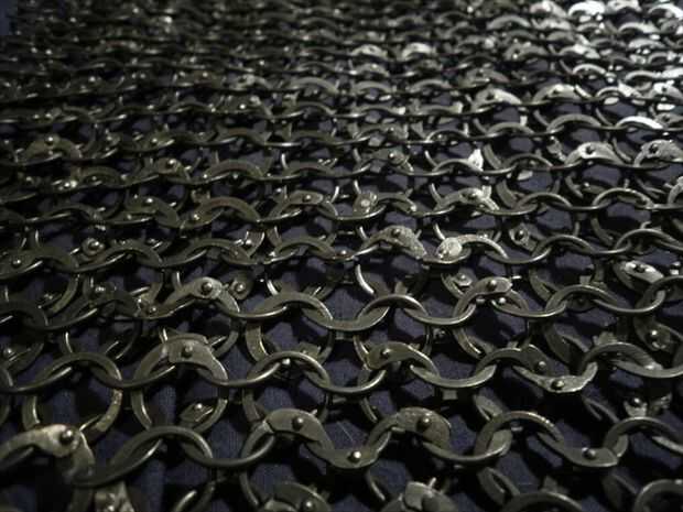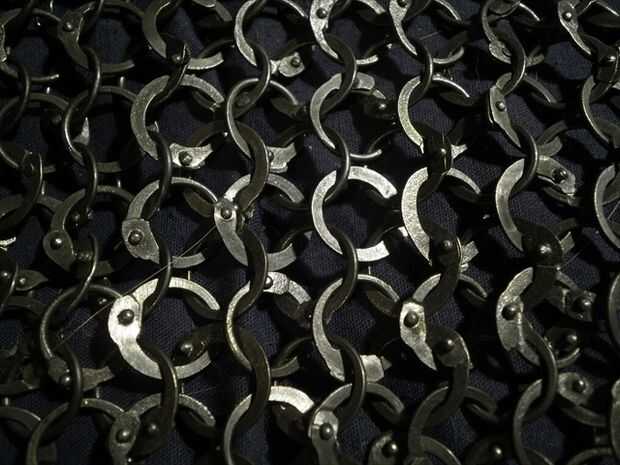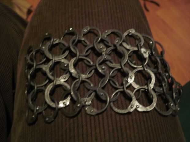 Así clavada maille tiene un interior y un exterior. Si usted está haciendo por ejemplo una camisa interior debe tener los lados planos de los remaches y el lado de la cúpula debe ser el exterior. No sé si realmente hace mucha diferencia en el largo plazo, pero es cómo se hacía en aquel entonces, eso es lo que estoy haciendo ahora.
