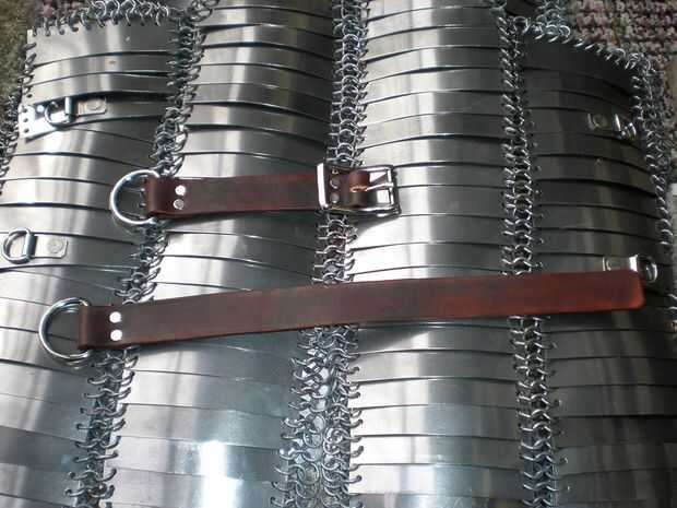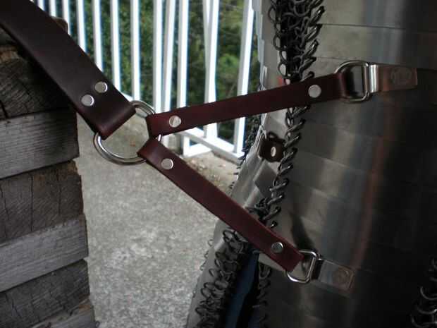 Corrí con una correa que va desde la parte baja de mi espalda en mi vientre bajo el peto. Esto actúa para mantener la placa ajustada contra mi espalda y en su lugar mientras estoy haciendo encima de la coraza. una vez que la armadura es todo hasta que él realmente no admite nada, así que es sólo una cinta de media pulgada solo.
