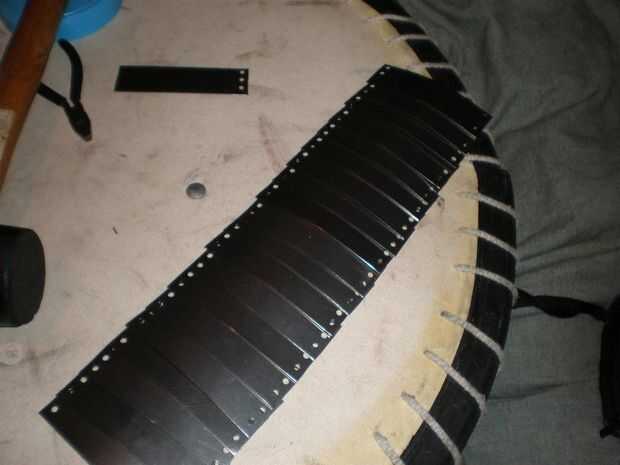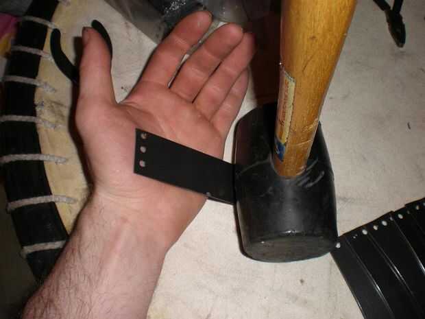 curvar las placas debe ser tan simple como doblando las placas sobre un objeto redondo. plataforma de bandas sin embargo, puede ser terco ya que generalmente es hecho de medio a acero de alto carbono y templado para ser un poco elástico. Idealmente formarían estos alrededor de una estaca de T, pero no puedo hacerlo en mi apartamento, así que tuve que encontrar una manera diferente.
