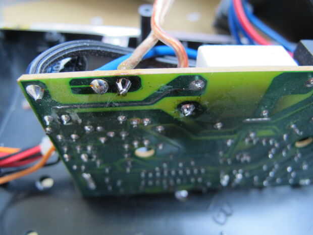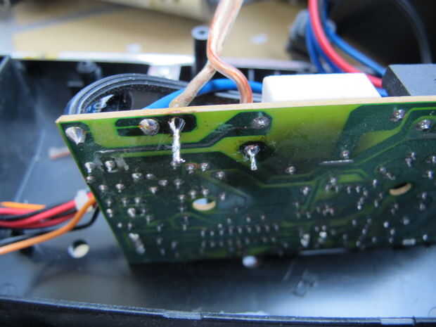 Pegar cada uno de los cables a través de uno de los agujeros de la PCB donde el fusible fue soldado en y de la soldadura de los extremos a la PCB.