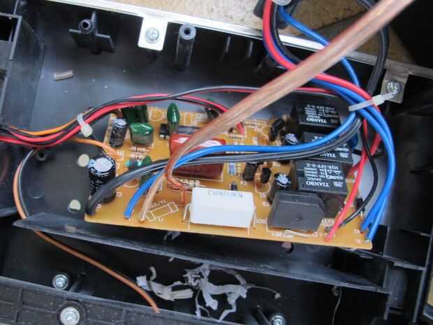 La superior izquierda cable es conectado directamente a la red eléctrica (si vieron el PCB desde la parte de atrás y justo al lado del cable azul cuando observaba desde el frente del PCB). Recuerda que cable está funcionando a esta conexión. Los conectores de los interruptores de circuito son nombrados "Línea" y "Carga" (al menos en mi caso). Así que usted quiere asegurar para conectar el cable que viene directamente de la red con el conector "Line".