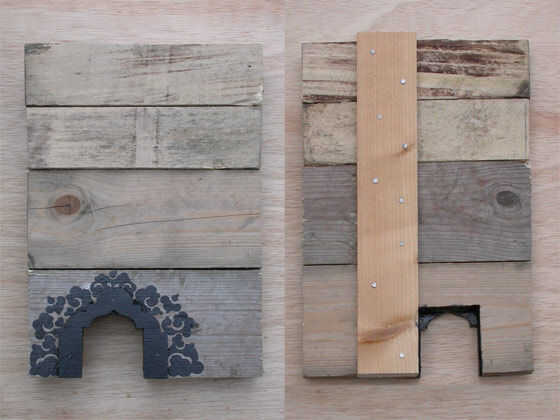 El calado de la madera contrachapada fue unido con pegamento para madera y tachuelas de uñas imagen.