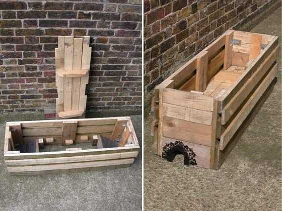 2. con 4 soportes en ángulo, fije los paneles posteriores de la casa de rana en una distancia que se acomode a la teja o pizarra (según esquema). El piso del canal descansará en las cimas de estos paneles para que verifique la profundidad final de la canal es suficiente (por ejemplo) cultivar zanahorias. Estos utilicé la porras de madera de 2,5 x 2,5 cm a attatch como había agotado de soportes en ángulo. Paso 8 ilustra el refugio de la rana más detalladamente.