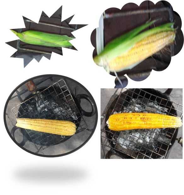 • Pulir el maíz con mantequilla • Empezar asar maíz uno por uno • Mantenga cada maíz sobre la cáscara • Pulir el maíz a la parrilla con jugo de limón salado • Empiece sirviendo uno por uno
