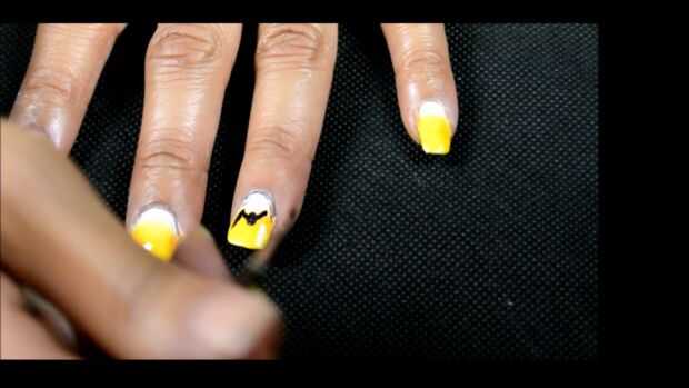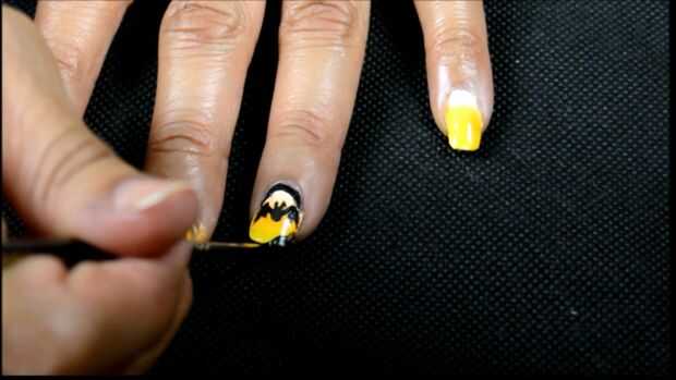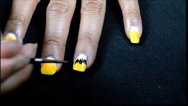 Se puede detener con solo las uñas de caramelo sabroso pero para algunos ha añadido más lindo, hacer un murciélago en su dedo anular.