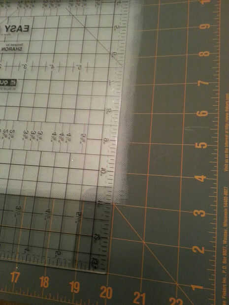 #6 mover el borde recto de la regla para exponer la cantidad de tela que usted necesita para cortar