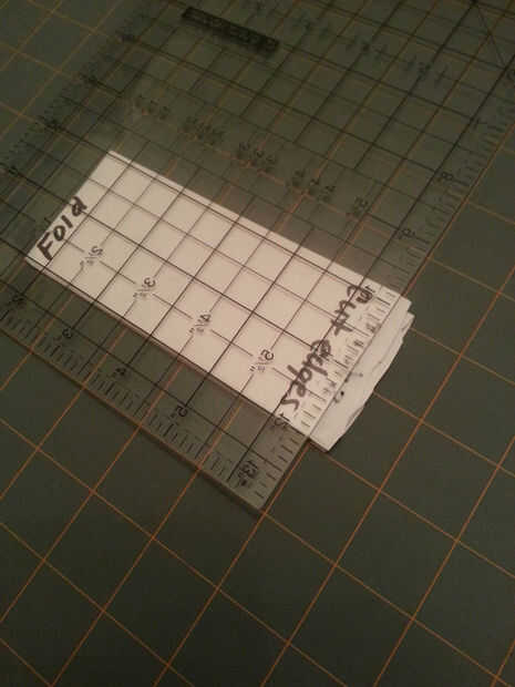 Nota: Si no utiliza almohadilla de corte y cortador rotatorio, se puede doblar a la tela como el anterior. PIN o clip juntos la tela para que no resbale. Utilice un borde recto (como una regla) y un marcador para marcar una línea recta. Corte a la izquierda de la línea marcada (cortando la marca) con unas tijeras afiladas