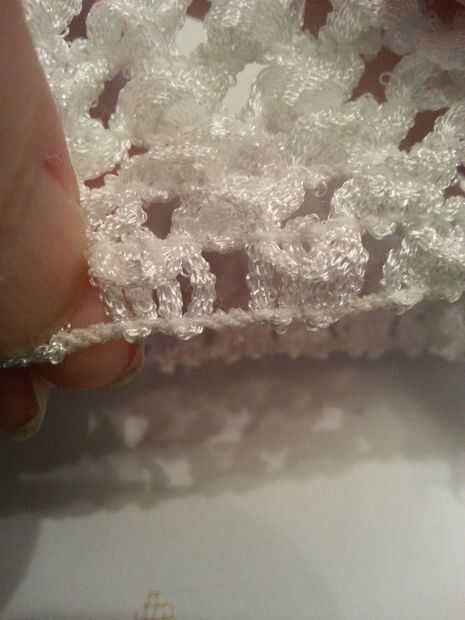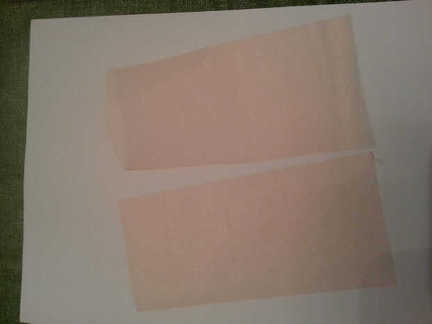 A partir del borde inferior había encontrado 'Agujero' con apenas un hilo elástico a través de él. Alineadas las dos 2 tiras, luego 'arrugó' les juntos en el centro.