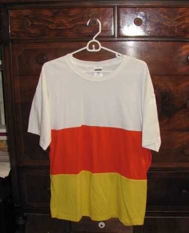 Se trata de un disfraz de halloween fácil última hora perfecta para la persona que se niega a usar otra cosa que una camiseta. Visten como un maíz de caramelo gigante! Si tienes suerte, tal vez alguien comerá.