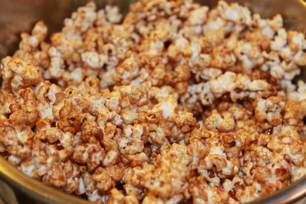 Otra forma es hacer el caramelo hasta el escenario de bola suave, luego las palomitas de maíz, luego agregar el caramelo cerca cuando las palomitas de maíz están a punto de empezar a puntear. Esto es lo que me gusta hacerlo.