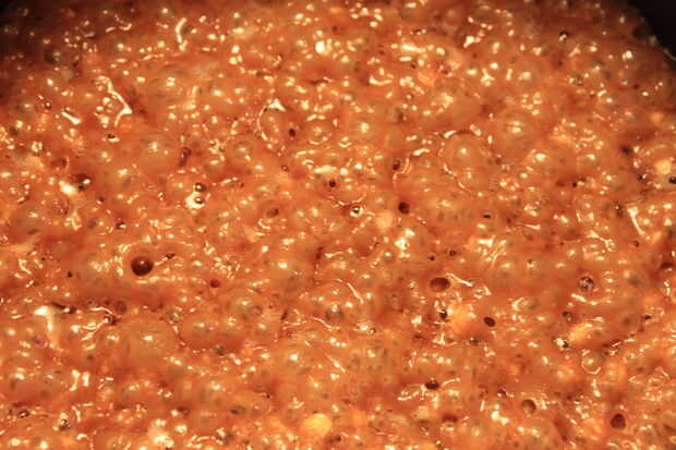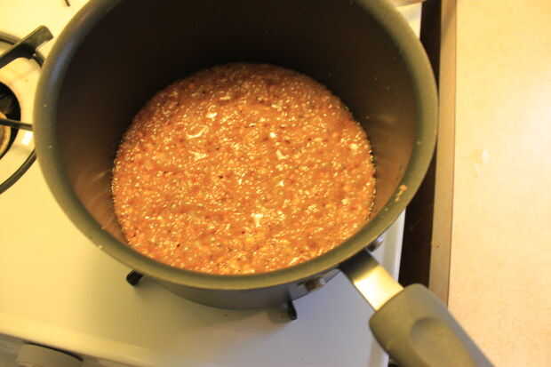 Cuando comienza a hacer estallar otra vez, ponga la tapa en. Caliente el aceite y las quemaduras de caramelo y perjudicará a sus patas.