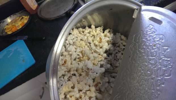 Use una máquina de popper o una máquina de aire. No palomitas para microondas aunque...