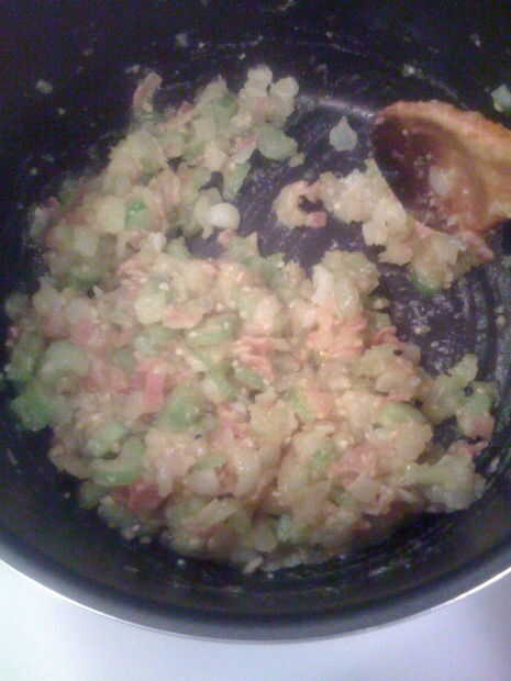 Es muy sencillo y muy delicioso plato. Necesita varios minutos para prepararse.Ingredientes:6 onzas de queso de crema, suavizado1/2 taza de mayonesapalillo del cangrejo 144 cebollas verdesmedia luna de tubo de 16 oz. Enrolle la masasal y pimienta, al
