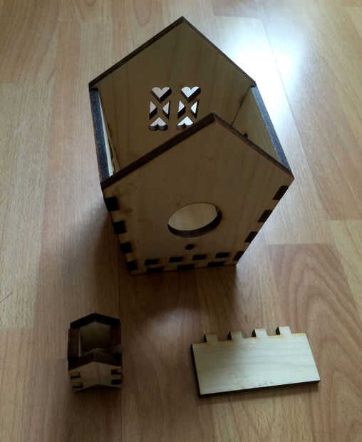 Así que vamos a conseguir con él, esto es lo que construiremos: arriba se muestra un cuadro de la pajarera terminada.
