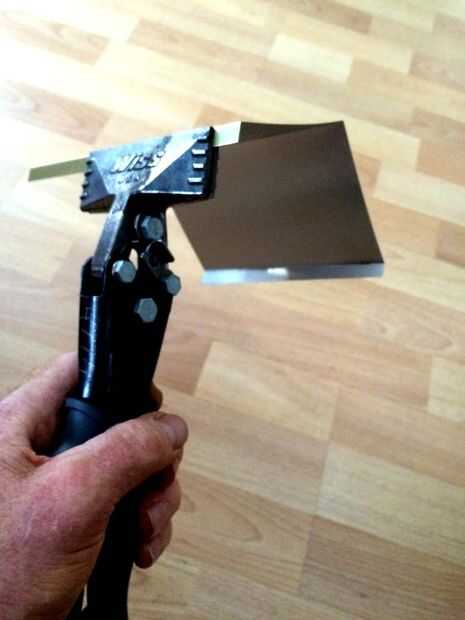 3. un techo de metal podría ser añadido. Para ello, utilicé un plateado de cobre amarillo que destella. Yo era capaz de usar las tijeras en el TechShop para cortar y el freno para doblarlo. Para obtener las últimas modificaciones pequeñas, alicates de cierre son sólo la herramienta. Desde que uso les tan infrecuentemente, extrae un par de la biblioteca de la herramienta local, en lugar de poner los 25 $ que costaría un par de pinzas cose. Una imagen de las pinzas de la costura y el techo acabado están por encima.