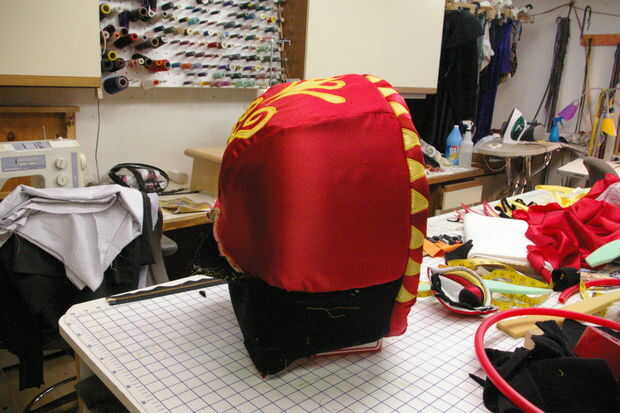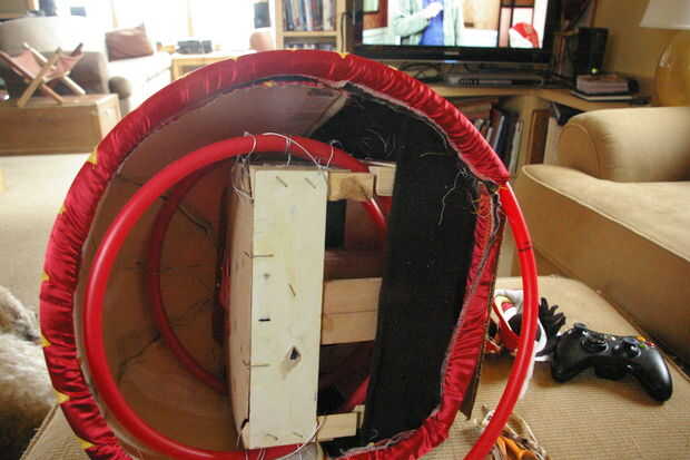 Antes de esto armé añadí un manguito alrededor del cráneo de tela que es de mismo tamaño que mi aro. Hay 3 aros dentro del cráneo. En la parte trasera es del mismo tamaño que los aros en el cuerpo.