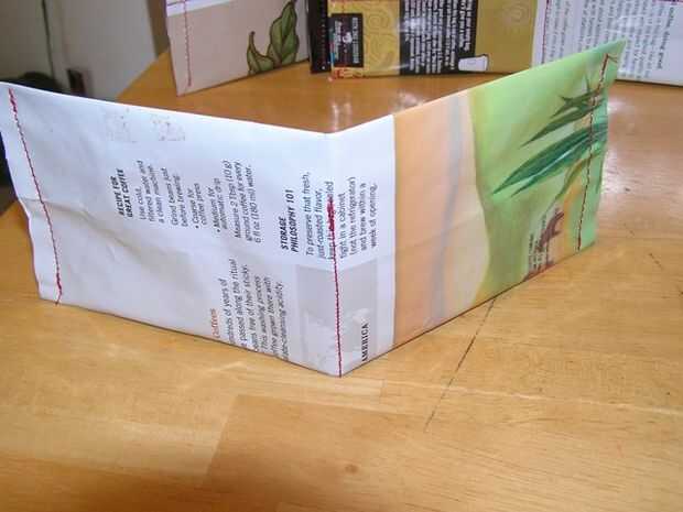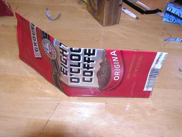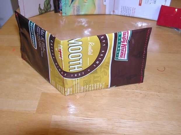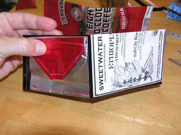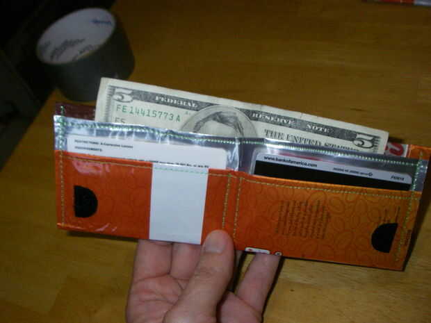 Perdí mi cartera en San Francisco hace unos meses y no han querido comprar uno nuevo. Como estaba tirando una bolsa de café el otro día, pensé que era buen material para algo o otro por lo que salvó. Ahorrando en la bolsa de th 4, brillaba de una manera atractiva brillante y me di cuenta de que podría ser mi próxima cartera con un poco de plegar y coser.