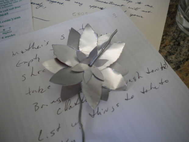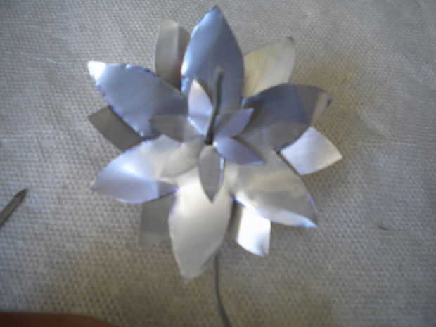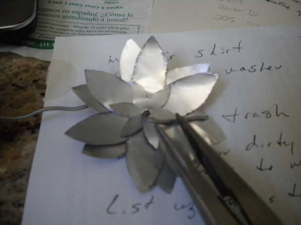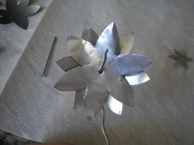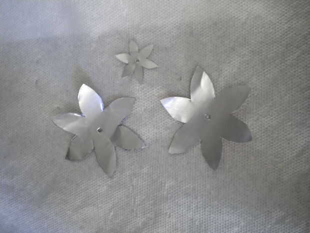 Deslice las flores sobre el cable. Me gustan las 2 flores grandes con una pequeña flor. Coloque los grandes primero y luego los más pequeños.
