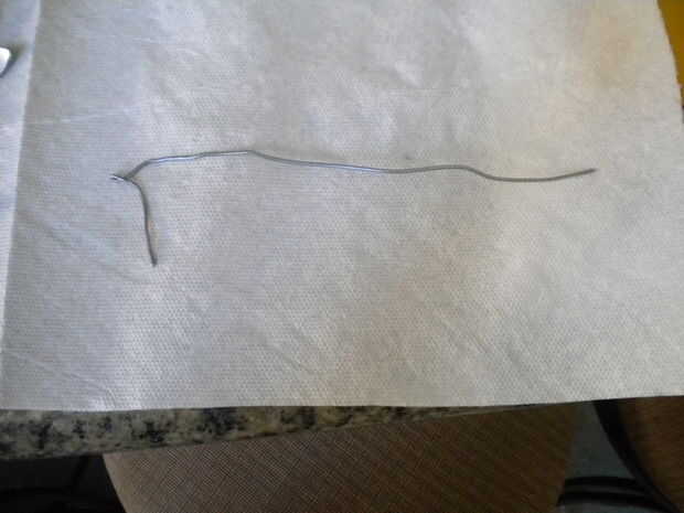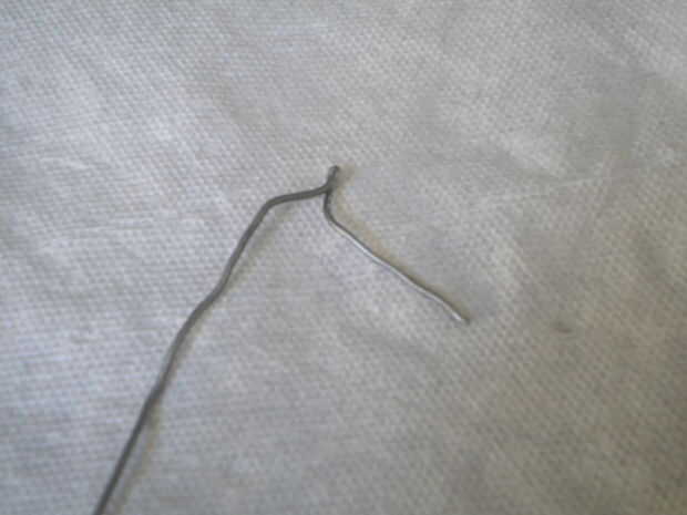 Corté un pedazo de 7 pulgadas de largo. No sea preciso a lo que parece correcto. Aproximadamente una pulgada de uno de los extremos hacer un lazo y una abrazadera apretada. Esto dejará las flores viajar a lo largo del tallo.
