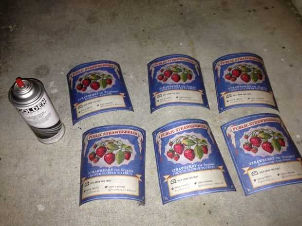 Las bolsas fueron diseñadas para indicar que la fruta es pública y dar a los peatones una idea de Cuándo esperar frutas y cuántas frutas crecería. El hashtag de Twitter fue impresa en la bolsa.