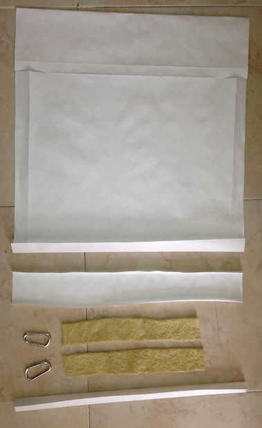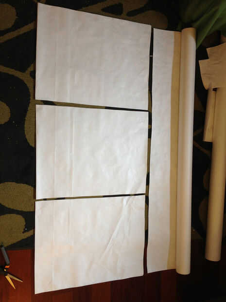 Un rollo de Tyvek a cortar tyvek para tres bolsas.