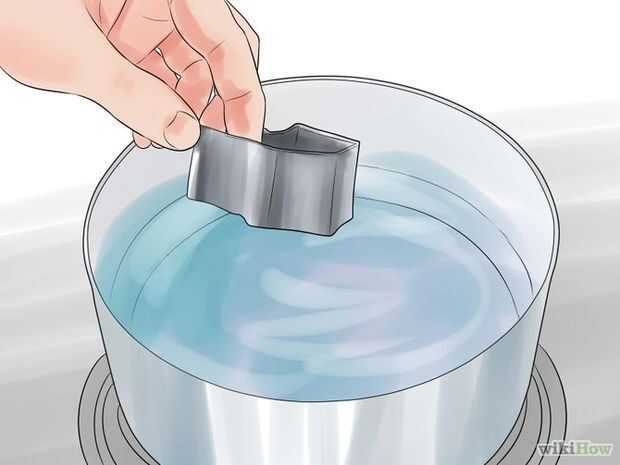 2. lugar un soporte de metal en el pan. Encontrar un cortador de galletas de metal o una tapadera de metal y colocarlo en la base de la cacerola, debajo del agua.