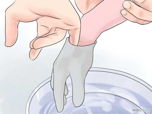 13. saque su mano de cera nueva. Afloje suavemente la mano de cera deslizando tu dedo meñique no encerada en la muñeca. Una vez que comienza a aflojar, sumergirla bajo el nivel del agua para ayudar a deslizamiento apagado. Si la mano está pegada, haga un orificio en la punta de los dedos de cera con la punta de un lápiz para liberar la succión.