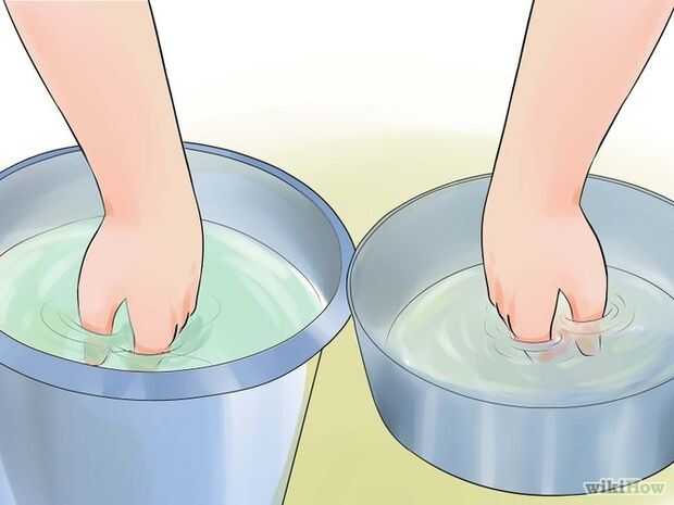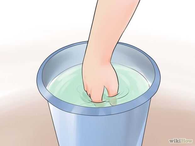 7. llenar un recipiente con agua fría. Un cubo funciona bien, ya que tendrás que mojar su mano entera en él. Llenar para arriba la mayor parte de la forma, pero deje espacio en la parte superior para evitar derrames.