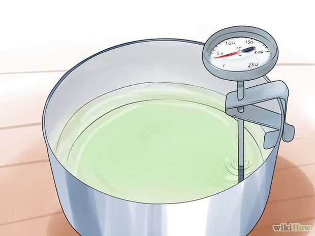 8. esperar a que la cera se enfríe. Cera caliente puede sufrir quemaduras graves, por lo que es mejor usar un termómetro de caramelo o termómetro de elaboración de velas para asegurarse la cera es segura. La cera está lista una vez se haya enfriado a 110 grados Fahrenheit (43) o ligeramente inferior.