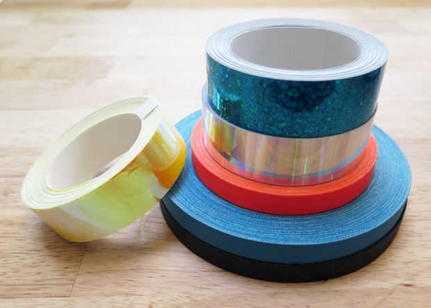 Ahora para la diversión parte! Tiempo para decorar su aro. Hay un sinfín de posibilidades, pero generalmente siempre quieren alguna cinta adhesiva para el agarre, y el resto es sólo decoración. Integran la mayoría aros espirales de cinta alrededor del aro, pero también puede Agregar cinta adhesiva en el interior del aro de enfoque como el más mínima.