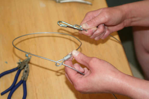Se trata de un elemento práctico que puede utilizarse si cazar y atrapar, o si vas en un viaje de campamento y se pierde. Puede ser utilizado para encadenar pequeños animales hasta alrededor de 50 libras. El perro llevan costo $1 desde nuestra tienda local donde todo es $1. Esto me tomó menos de 10 minutos para hacer.