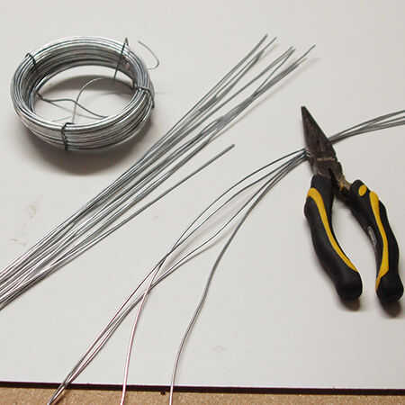 1. mi soporte de la Magdalena del alambre tiene 13 titulares, por lo que necesitará cortar 13 longitudes de cable de 500mm de largo. Una vez cortadas, estire cada trozo de alambre lo más posible.