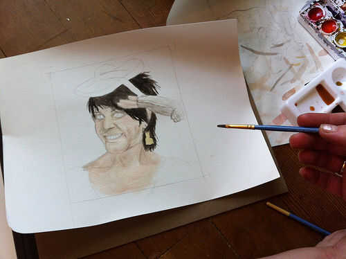 Si está pintando una persona, usted podría notar que su rostro luce irregular y arrugada mientras que usted está añadiendo sombras. Eso está bien. Usted puede suavizar el color luego con un cepillo sumergido en agua limpia.