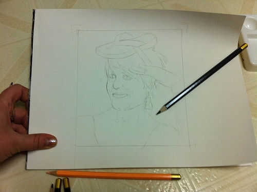 A veces tengo un tiempo difícil visualizar cosas. Había bosquejado la imagen ligeramente antes de pintar. Un lápiz delgado funciona bien para esto.