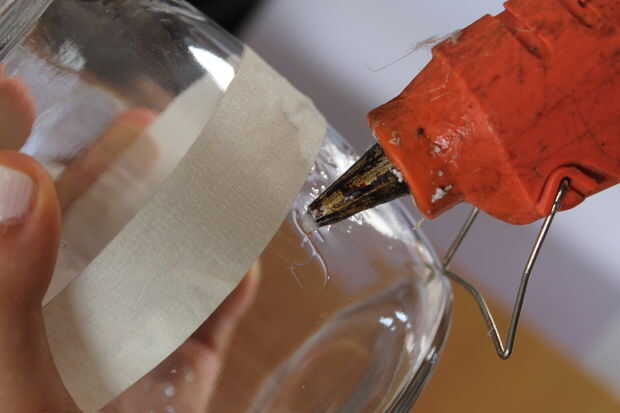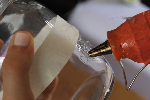 Usando la pistola encoladora como marcador, presione suavemente y escriba cualquier palabra que quieres ser realzado en su tarro de deseo de la diversión.