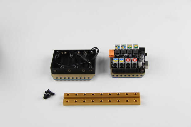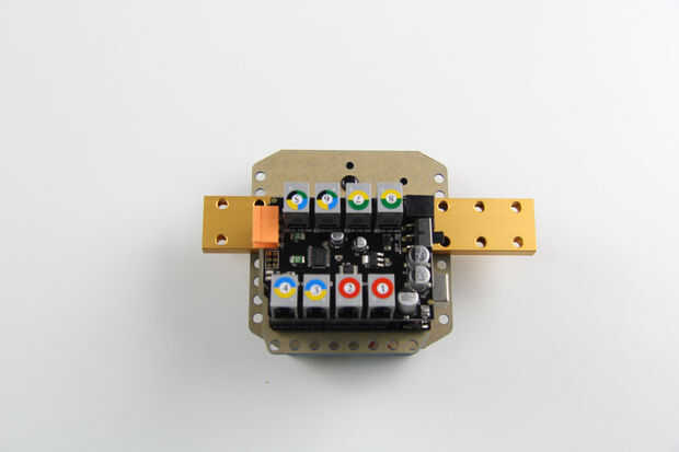 3. Ponga el Arduino con soporte acrílico de Arduino y Me-BaseShield en viga 0824-144.