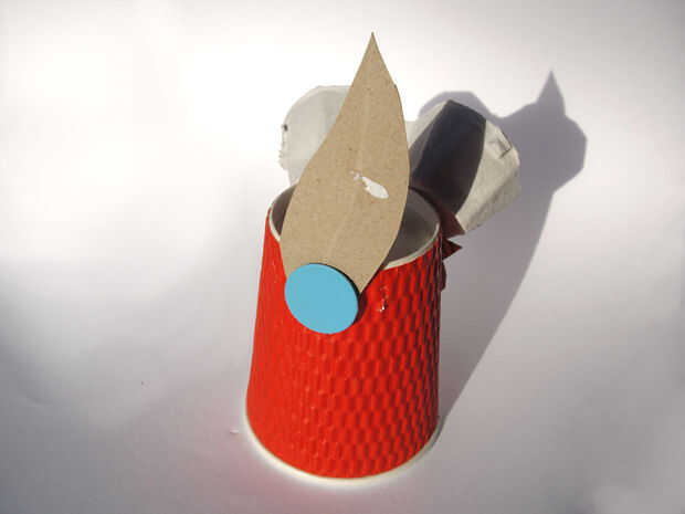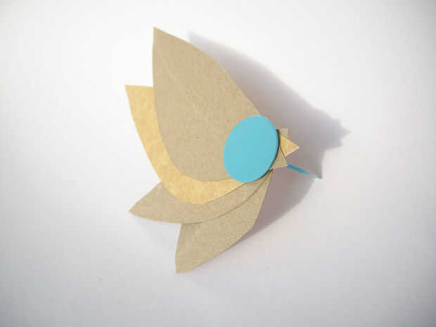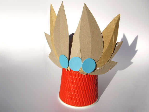 Vuelta la taza y comenzar a dar 6 su Turquía su plumaje! Puede ahorrar tiempo uniendo varias plumas a la vez como se muestra. Continuar adjuntando las plumas combinadas hasta que el pavo se ve justo