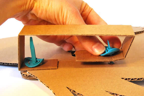 Doblar las asas en forma, insertar sobre Makedo volver a pernos y luego asegúrelo en su lugar con Makedo de nuevo los clips como se muestra.
