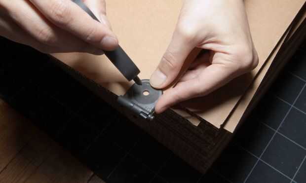 Fuente de cartón y cortar 30 plazas de 30x30cm. Utilice el punto extremo de la Sierra de segura de Makedo y agujeros en las cuatro esquinas de la cartulina cuadrada, sin embargo no demasiado cerca del borde. Guíese por la bisagra de Makedo espaciado.