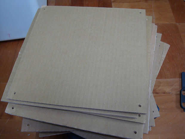 Agujeros en las cuatro esquinas de las restantes 29 piezas de cartón.