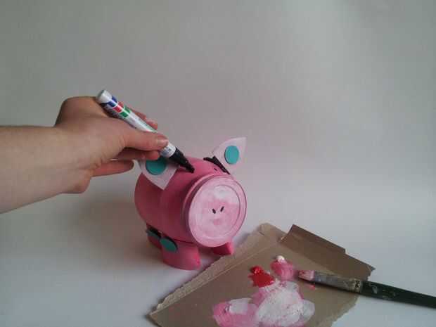 Vamos a pasar un buen rato decorando la hucha 8. Puede utilizar pintura, destellos, material, lo que le hace cosquillas a su fantasía! Pintamos nuestra hucha rosa! ¿Por qué no dar a su cerdo alguna personalidad demasiado? Oink Oink.