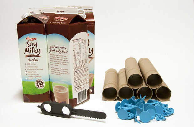 Para hacer que este mármol funciona, cartones de leche para las torres de la fuente y tubos para la ruta de mármol de papel.