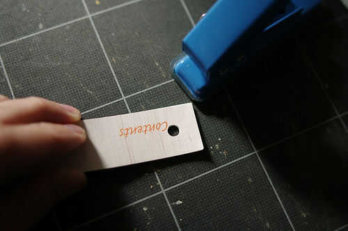 Utilice el punto extremo de la Sierra de segura de Makedo y agujeros en el extremo de cada tira.