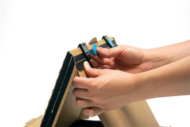 Una vez que tenga el ángulo deseado, conecte con bisagras cerradura de Makedo y Makedo volver a clips.